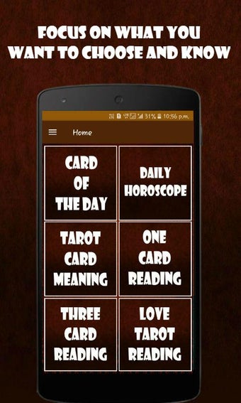 O aplicativo Free Tarot Reading se destaca como uma das principais opções na Google Play Store, oferecendo leituras de tarot diárias sem custo. Com uma interface amigável, o usuário pode acessar diversas funcionalidades, como o "Carta do Dia", horóscopos diários, significados das cartas de tarot, leituras de uma e três cartas, além de leituras voltadas para o amor. Cada recurso é projetado para ajudar o usuário a refletir sobre sua vida e a tomar decisões mais informadas.